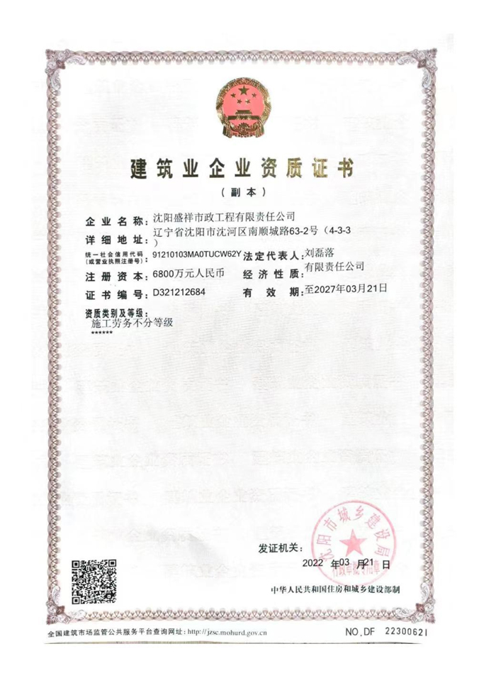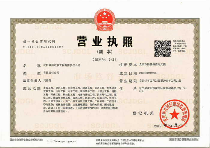 沈陽盛祥市政工程有限責(zé)任公司 地址:地址:沈陽市沈河區(qū)南順城路63-2號(hào)(4-3-3)