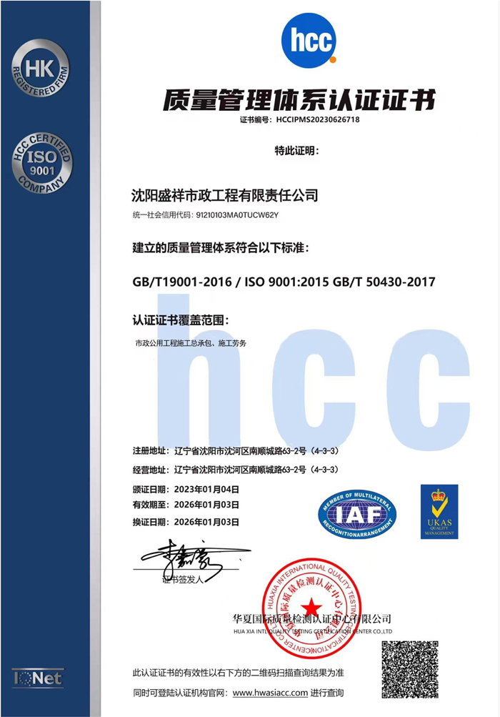 質(zhì)量管理體系認(rèn)證證書