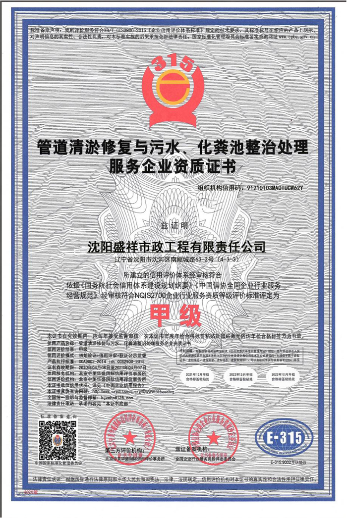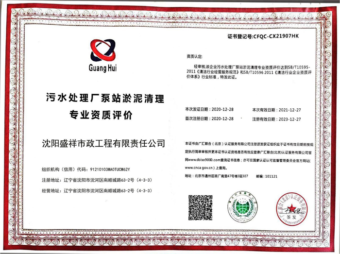 管道清淤修復(fù)與污水、化糞池整治處理服務(wù)企業(yè)資質(zhì)證書